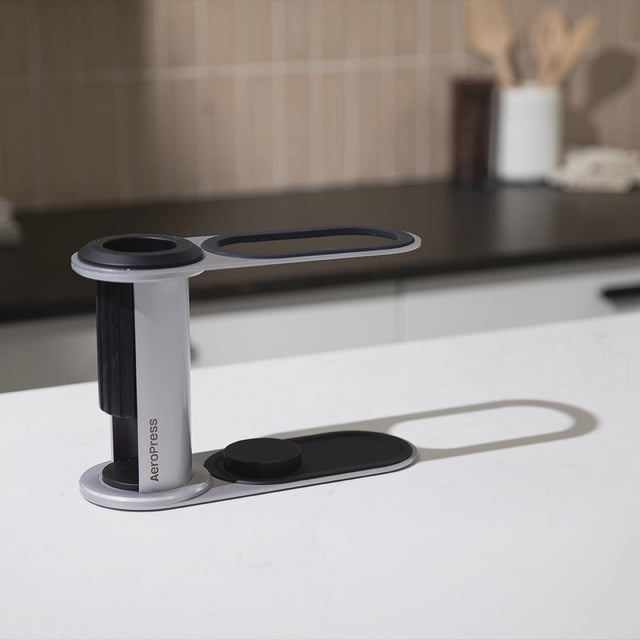 Made of food-grade stainless steel and silicone for a product that’s as beautiful as it is functional. Stores the AeroPress Premium (and other standard-size presses like AeroPress Clear and Original) along with accessories.